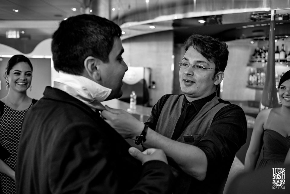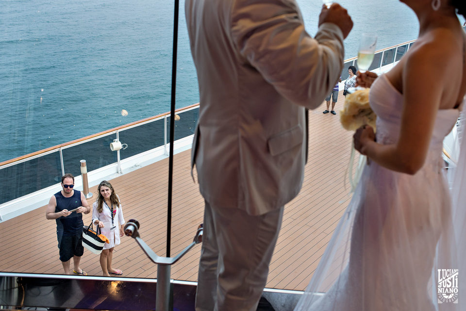 Eu estava muito aflito, tudo era novidade, fotografar sozinho um casamento em um navio e ainda pela primeira vez, logo de cara não era fácil. Mas graças a Deus tudo correu perfeitamente bem, noivos apaixonados, galera de amigos e familiares top de linha, depois que me entrosei com com todos foi ótimo, fiquei mais a vontade e pude fazer o que mais gosto, fotografar.
