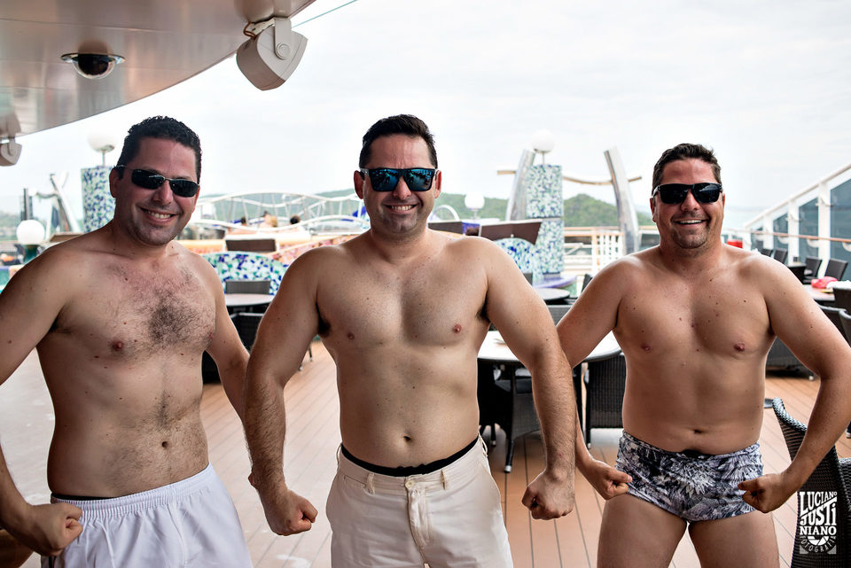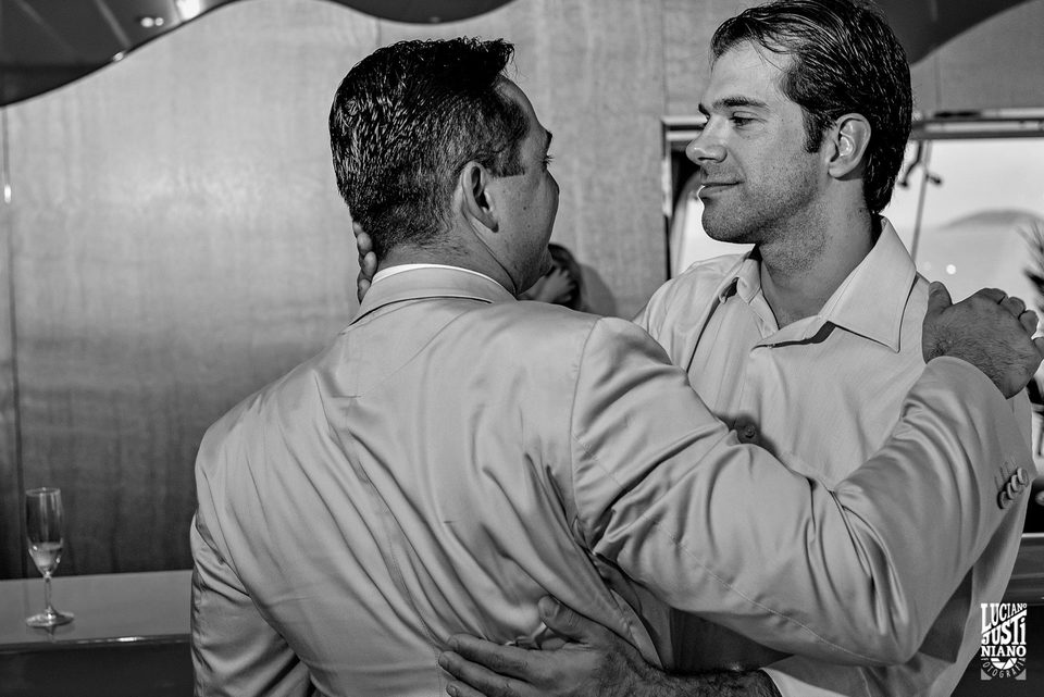 Em seguida fizemos uma rápida sessão de fotos no navio, que já estava navegando em alto mar, rumo a Ilha Bela-SP. No salão de recepção do navio, encontramos o Fausto e o Renan, amigos de infância do Edson e ali novamente a emoção tomou conta.