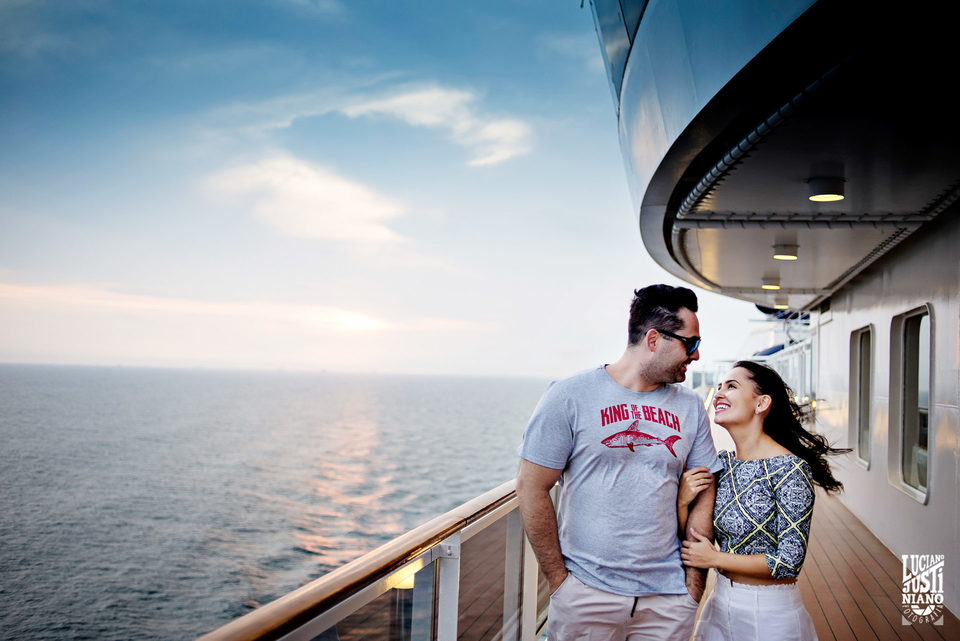 Marcamos de fazer uma sessão de fotos na praia, mas como não deu certo de descer e já pensando nos preparativos do o casamento, achamos melhor ficar no navio.