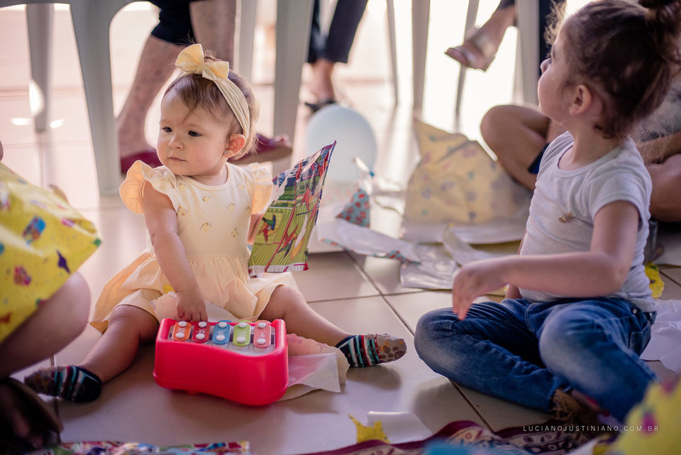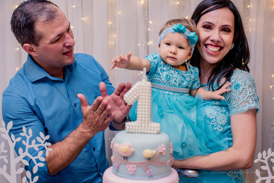 A festa estava linda, a Maria Luiza se divertiu muito e sorriu bastante com a presença de todos. Um encanto de menina.