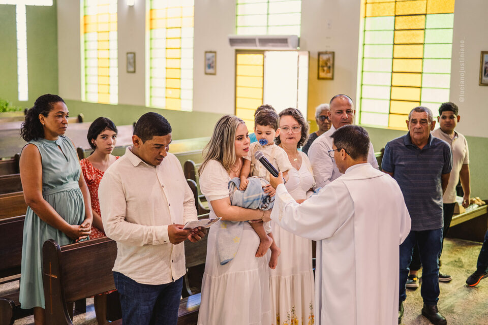 O batizado do José Luiz foi um momento de profunda emoção e significado, um gesto de fé, proteção e entrega nas mãos de Deus.
