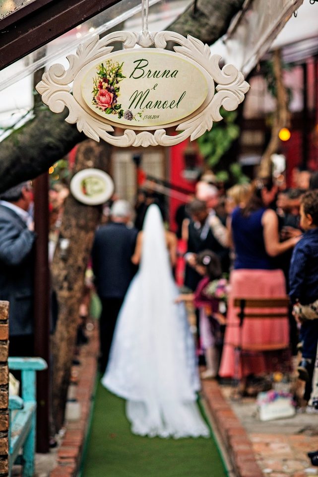Bruna conheceu Manoel através de um amigo da faculdade. Todos os dias, Manoel dava carona para o amigo e encontrava Bruna. Eles tinham muitas coisas em comum. Conversavam horas a fio, não importava o assunto, sempre tinham o que compartilhar um com o outro. E apesar da diferença de idade, um sentimento começou a florescer entre os dois e eles começaram a namorar. Durante os 7 anos de namoro, eles construíram um relacionamento sólido, que nem mesmo a distância, em alguns momentos, pôde separá-los. Bruna se formou em Economia e, em seguida, foi fazer intercâmbio no exterior. Durante a sua estadia nos EUA, ela achou muito interessante um ensaio fotográfico de uma noiva na cidade de Chicago, muito conhecido lá fora como "Trash the Dress". Com essa lembrança fixa na cabeça, ela planejou fazer o mesmo quando chegasse a sua vez. E assim se deu. Durante os 2 anos que eles estiveram noivos, fizeram ensaios fotográficos, vestidos a caráter, em diversos lugares do Brasil (SP, RJ, MS, PE, RS) e do exterior (Paris, Veneza e Grécia). Inclusive, uma foto de um ensaio em Bonito/MS foi a inspiração para o convite do casamento feita pelo fotografo Luciano Justiniano do Pantanal do MS. Apaixonada por fotografia, Bruna queria guardar as lembranças das viagens e do grande dia através das fotos que se tornaram uma jóia de família para esse casal que celebrou o casamento.