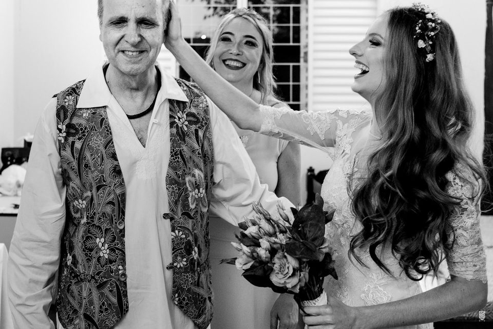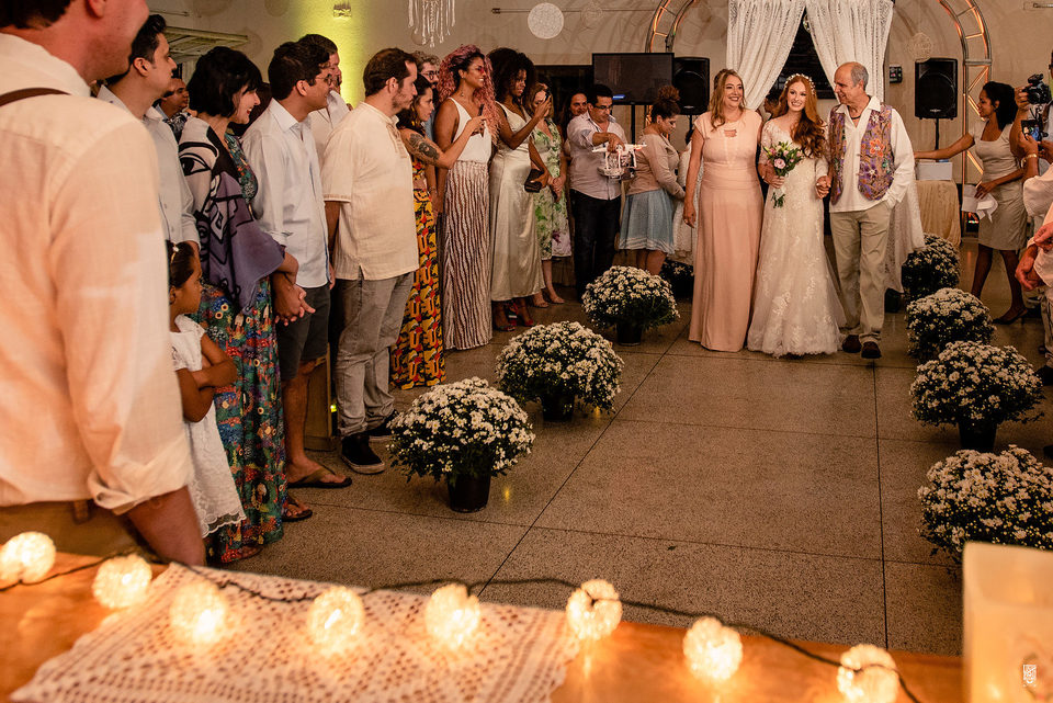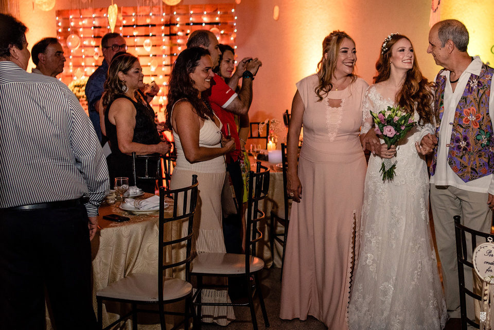 Com todo o imprevisto do tempo... eles conseguiram se superar e realizaram uma cerimonia linda. O impressionante como as famílias se uniram para literalmente colocar a mão na massa e ajudar. Foi incrível..