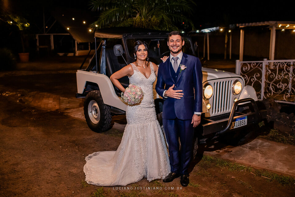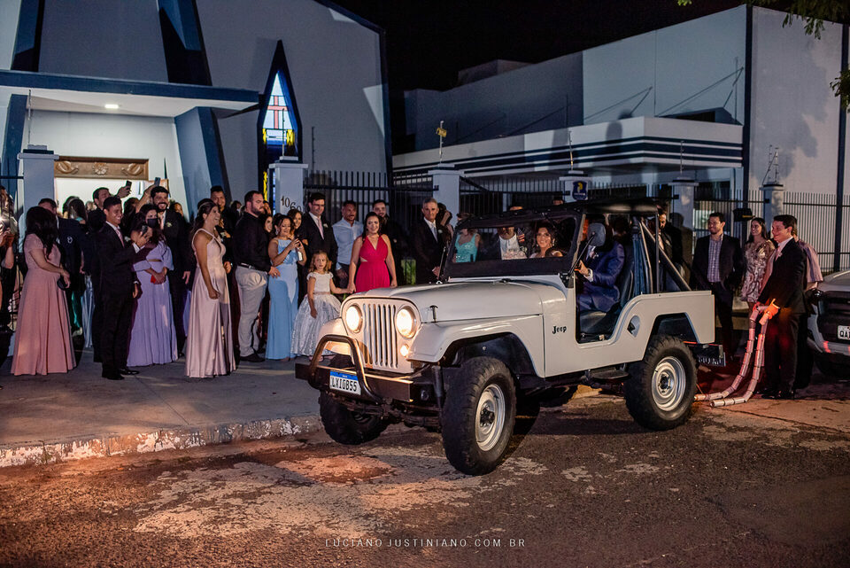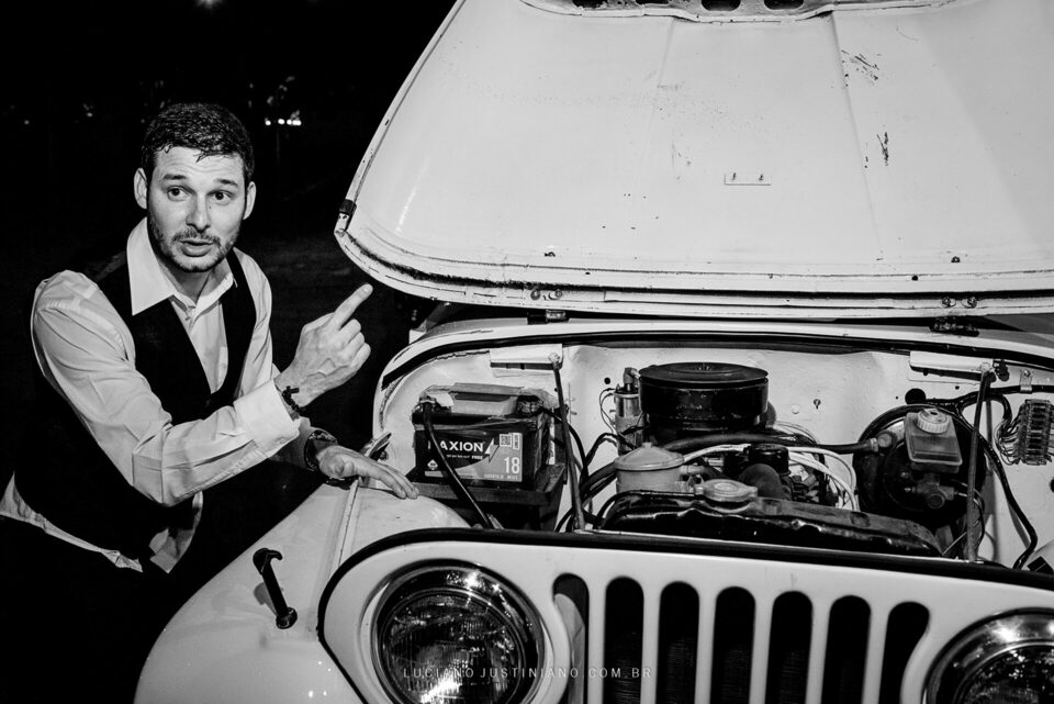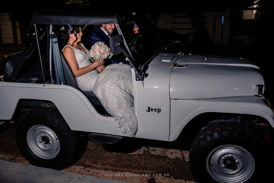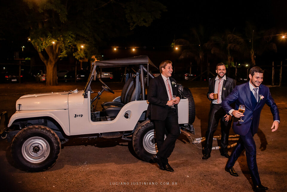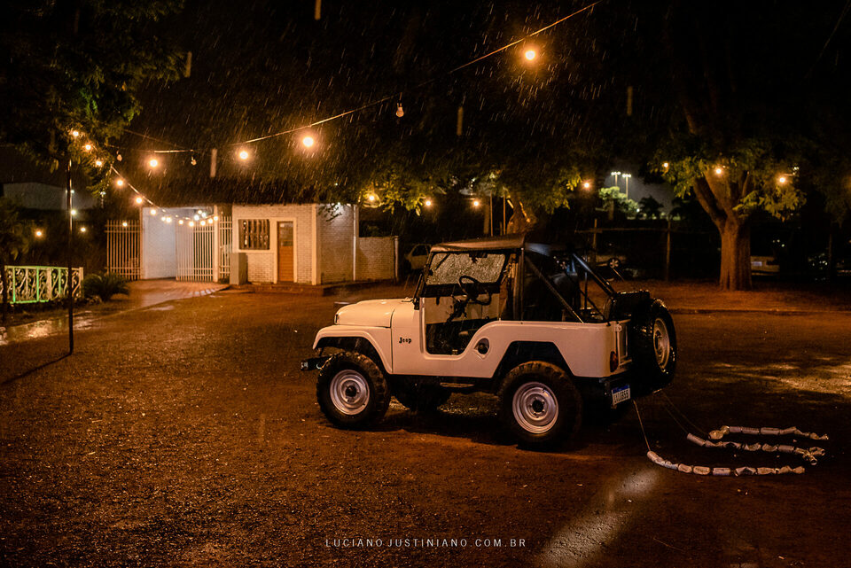 Nesse casamento tinha um detalhe muito interessante, o noivo Alexandre fez questão de sair da igreja com seu xodó Burro Branco, um Jeep Willys de 1967 que ele reformou todo e tem o maior orgulho em mostrar para todos. O Jeep tem até uma página no Instagram, @jeep_burrobranco segue ele por lá.