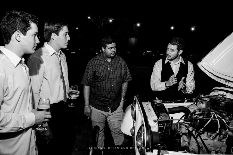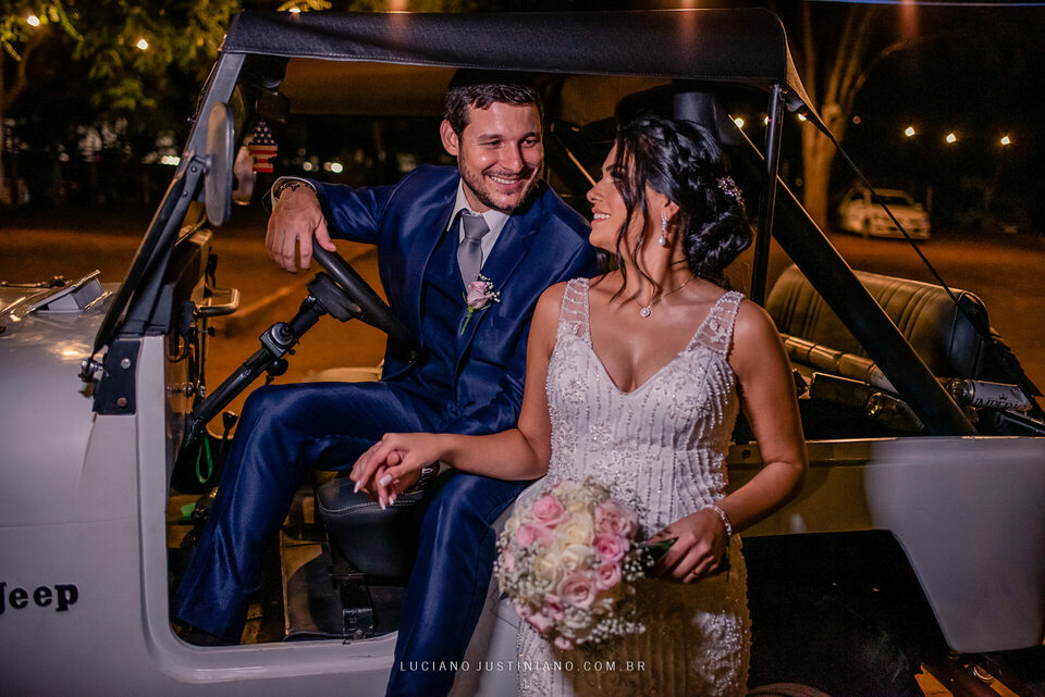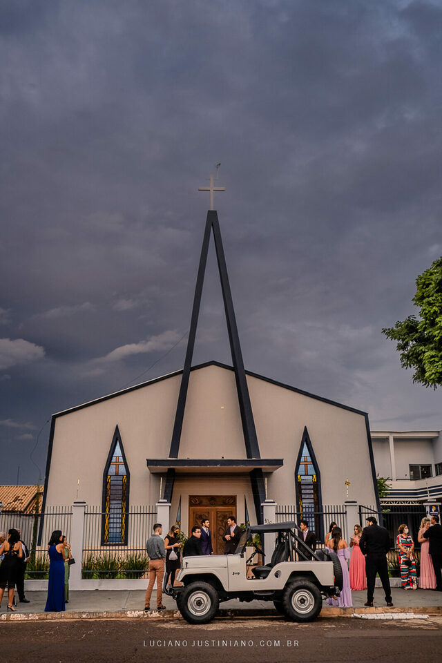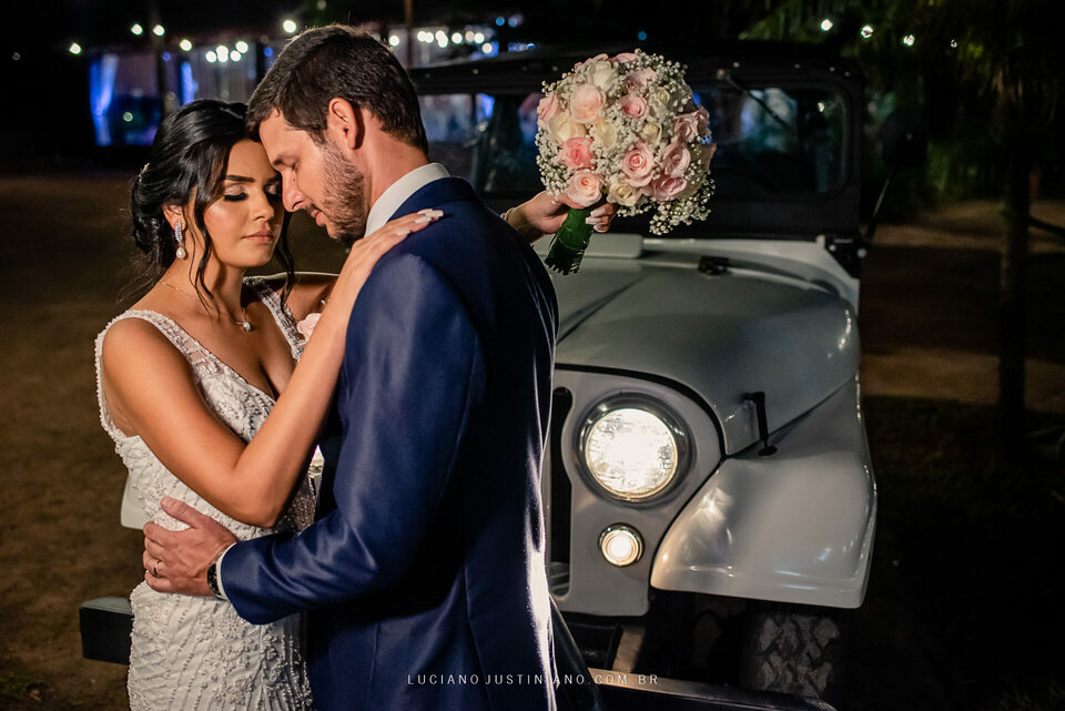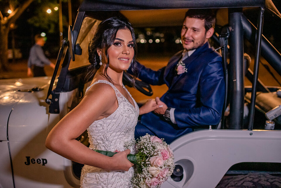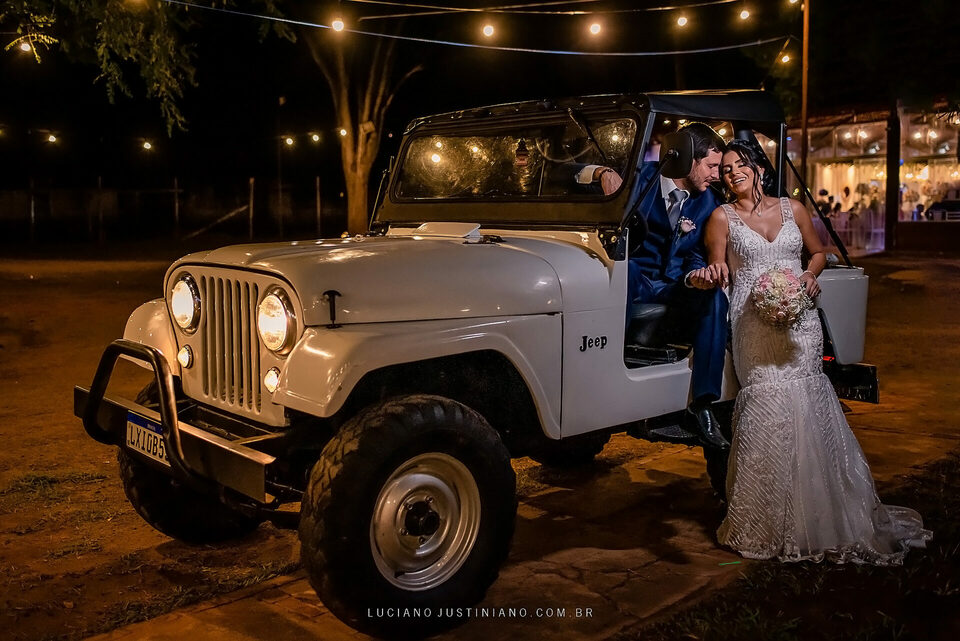 Nesse casamento tinha um detalhe muito interessante, o noivo Alexandre fez questão de sair da igreja com seu xodó Burro Branco, um Jeep Willys de 1967 que ele reformou todo e tem o maior orgulho em mostrar para todos. O Jeep tem até uma página no Instagram, @jeep_burrobranco segue ele por lá.