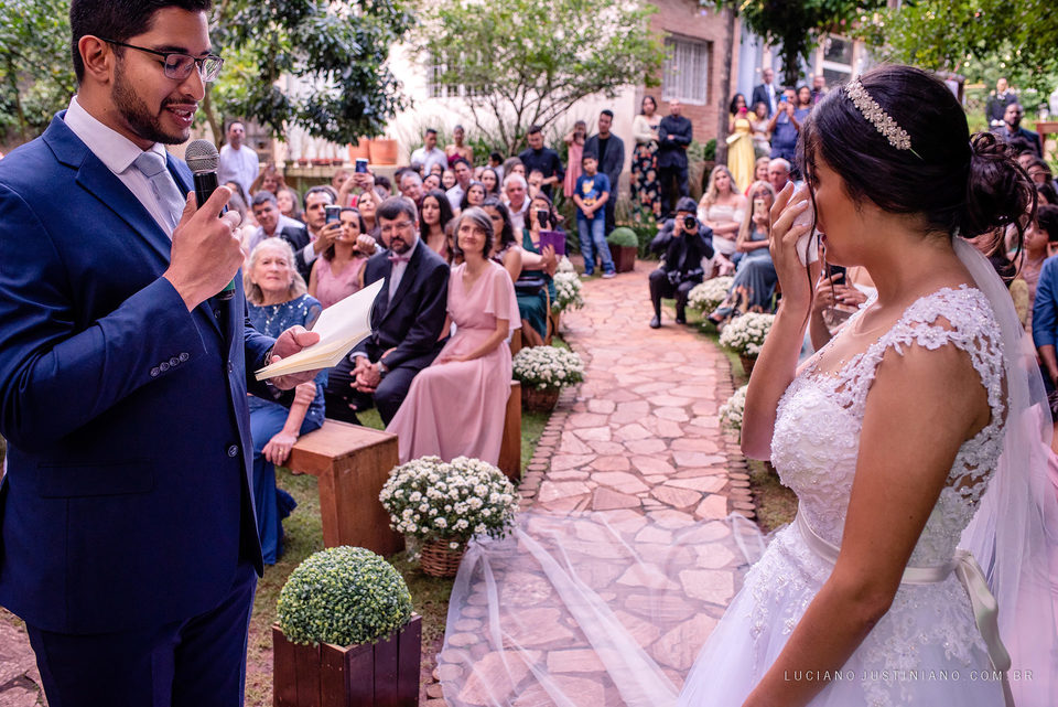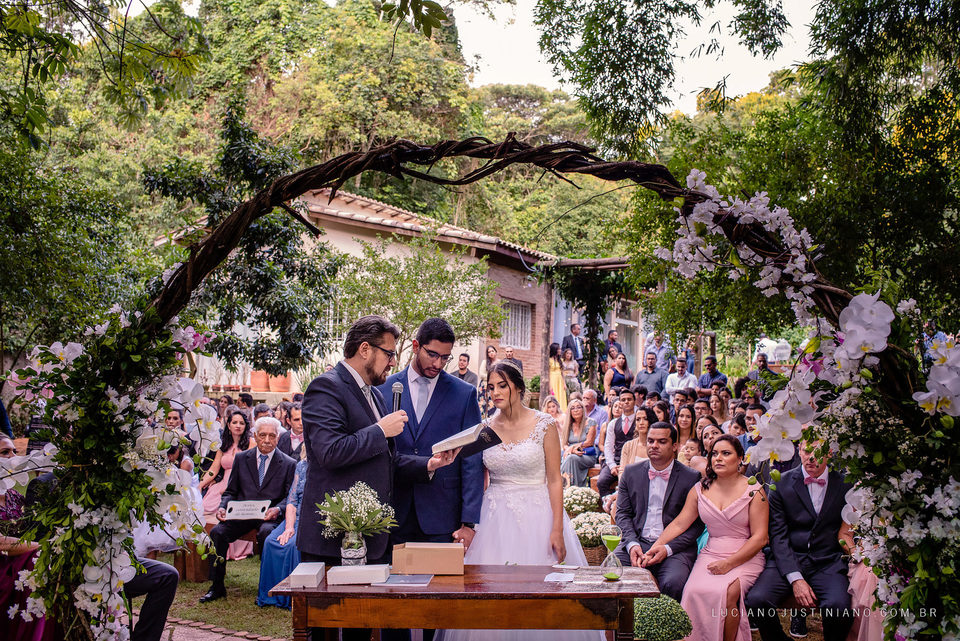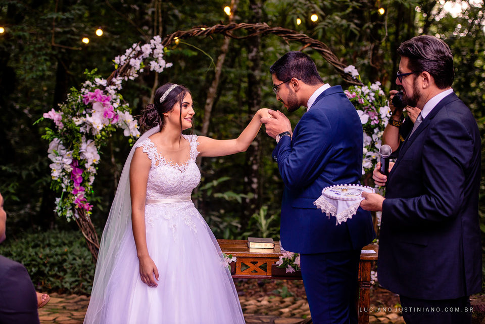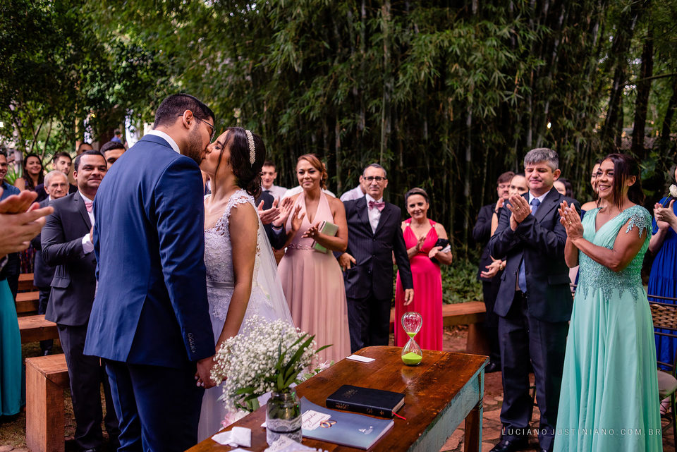 Foi um casamento incrível, repleto de emoções, lágrimas, abraços, sorrisos e muita felicidade. Era um sonho da noiva Maria casar de dia, ainda no início do making of deu uma chuvinha e o tempo estava marcando chuva de 100%, mas Deus em sua infinita bondade, abençoou mandando um lindo sol para aquecer as emoções ali presentes.