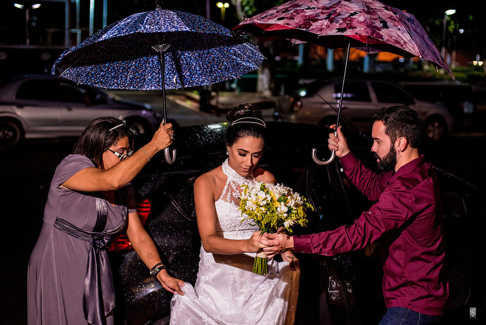 E foi assim no casamento de Samari e Robson. Parece que o casal comeu na panela como diria a tradição, porque choveu de uma forma em Miranda na noite do casamento que só foi parar já na madrugada do outro dia.
