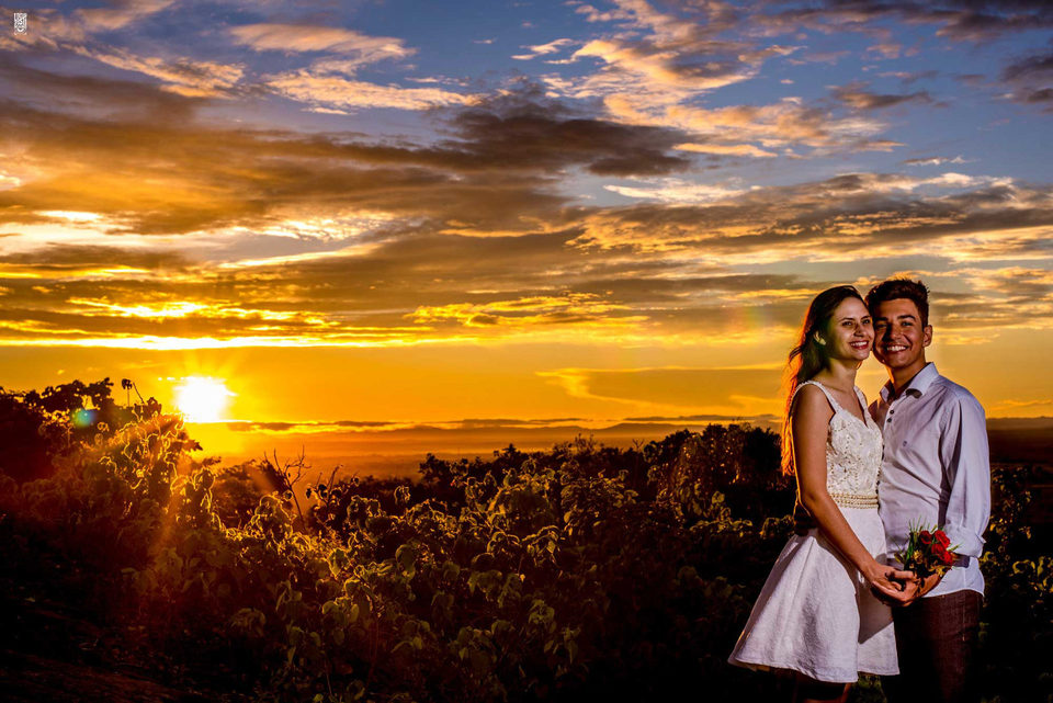 O céu preparou um cenário incrível para a sessão de fotos. Como se Deus iluminasse este casal com a luz mais linda do dia, o por do sol. Tudo ficou exatamente como deveria ser, para um casal abençoado como este.