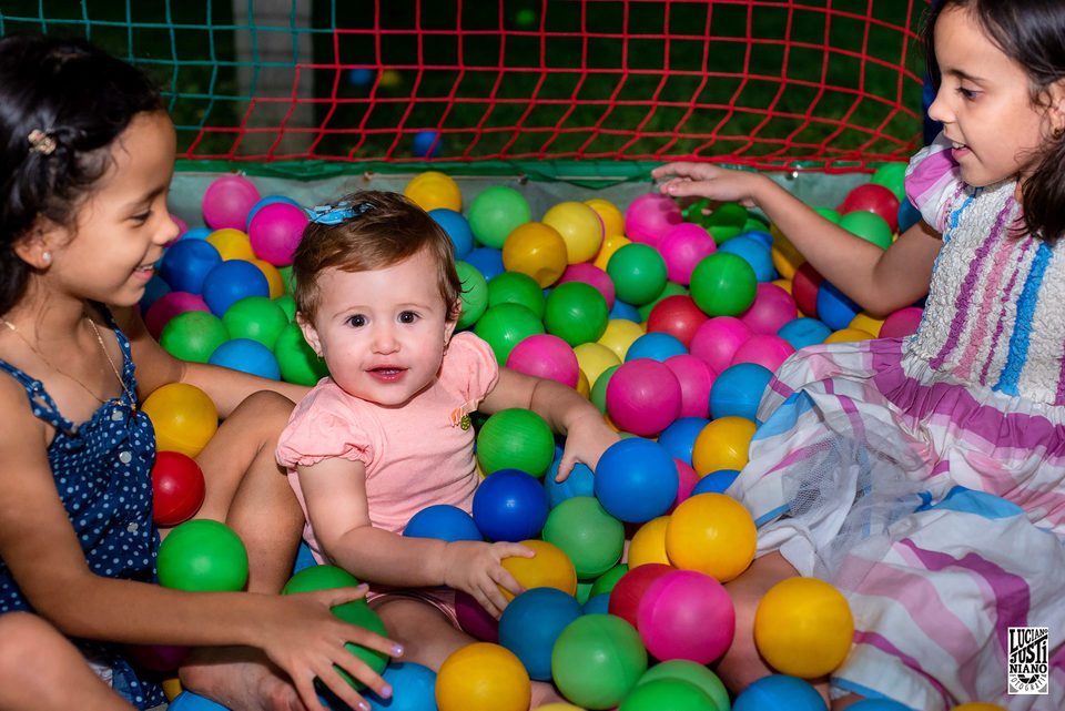 Manu correu, brincou, se divertiu como nunca, o espaço Paraiso Eventos foi pequeno para o tanto que ela correu.
