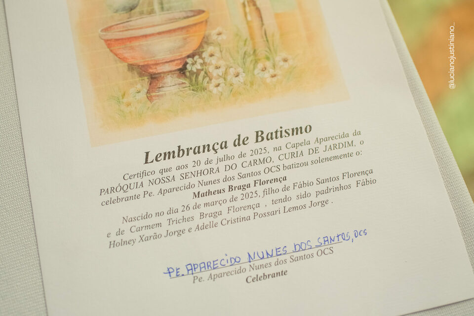 Ontem (20) tive a alegria de fotografar um momento lindo e cheio de significado: o batizado do pequeno Matheus. Uma cerimônia emocionante, repleta de fé, amor e gratidão.