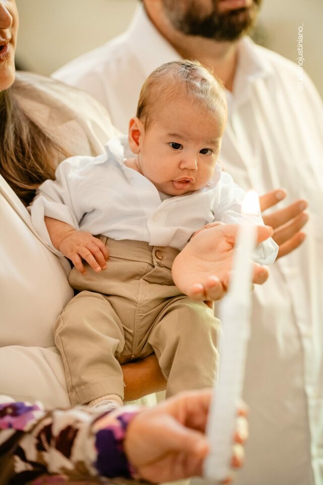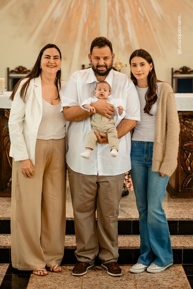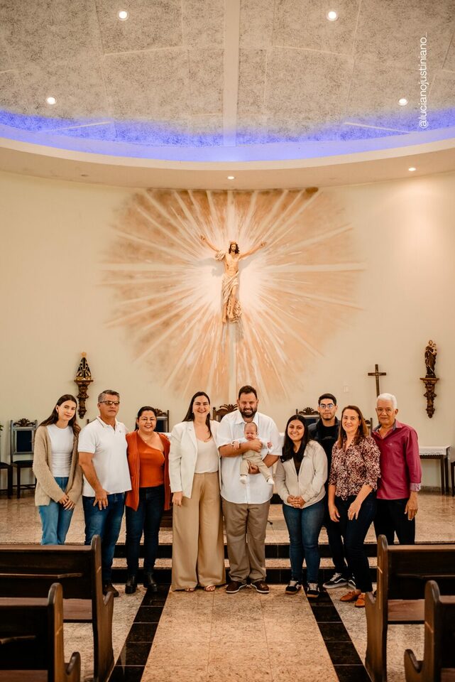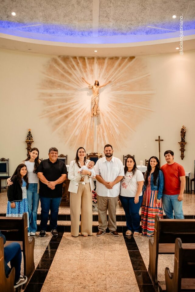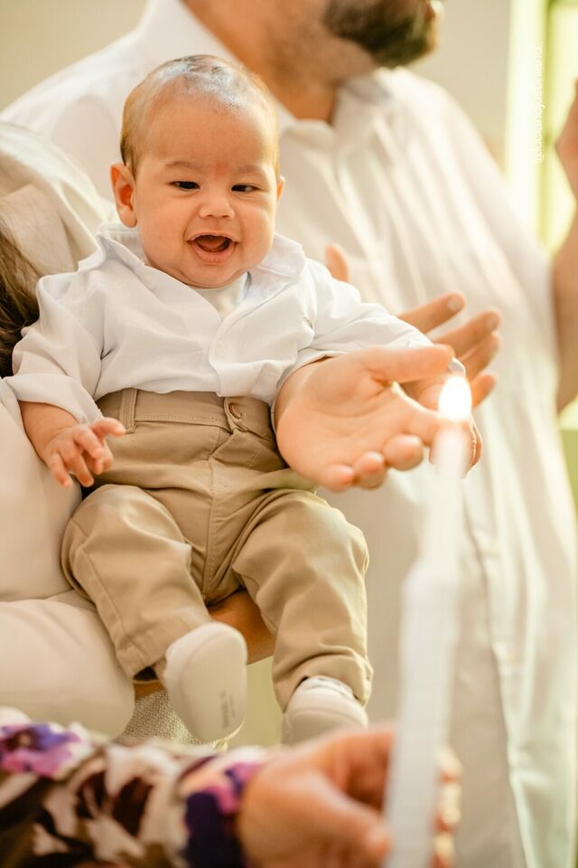 Ver o Matheus sorrindo ao olhar a vela do batismo foi especial. Um sorriso cheio de luz, que carrega toda a história de esperança e oração vivida pela Carmem e pelo Fábio. A chegada do Matheus foi um verdadeiro milagre — resultado da união, da fé inabalável e do carinho de toda a família Braga Florença.